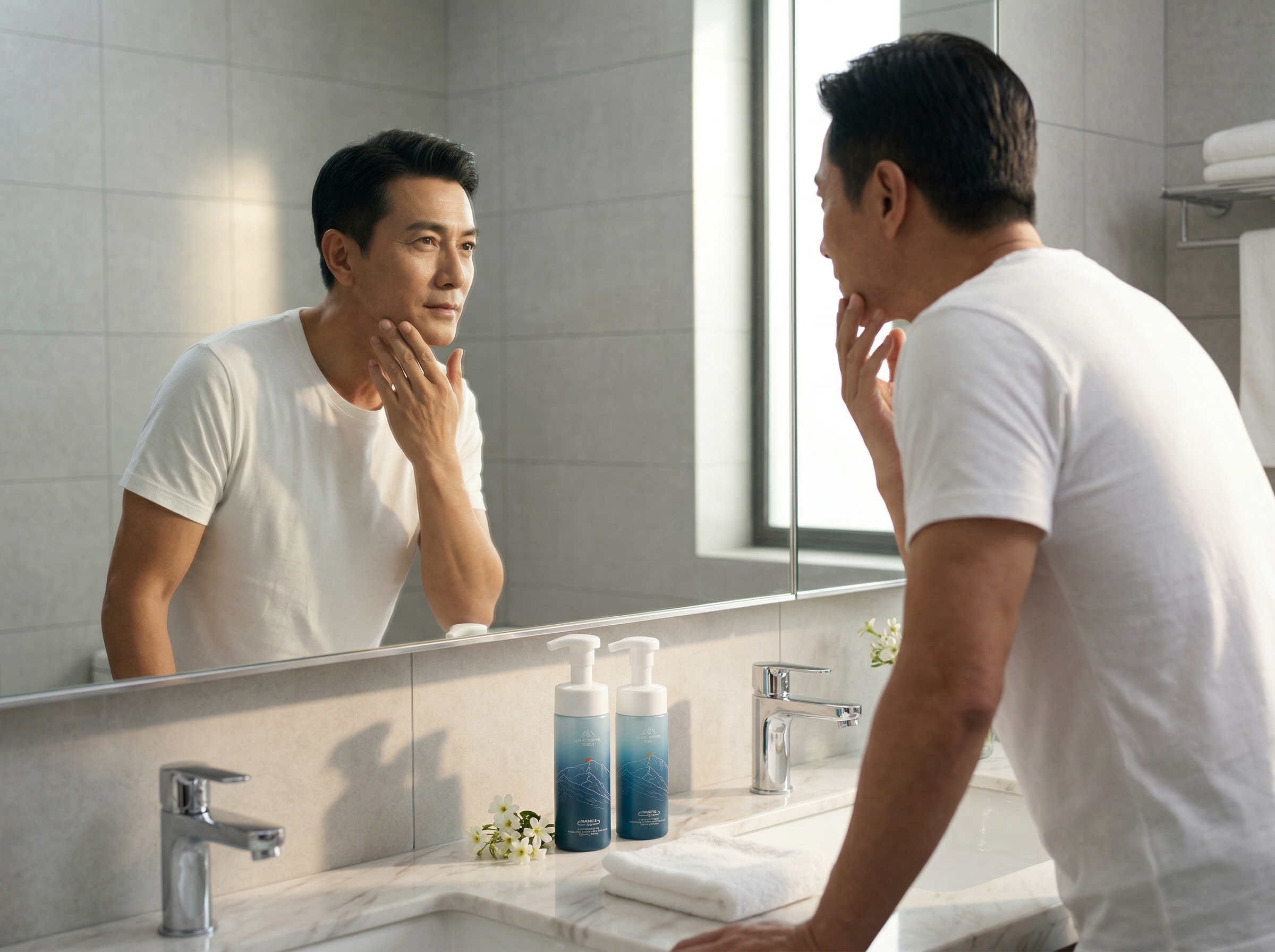 东方男性的皮肤结构与衰老轨迹有着独特的规律。我们深知,成熟不仅是阅历的沉淀,更应是状态的从容。东面山专注于东方熟龄肌的深层需求,不仅解决表面的岁月痕迹,更致力于构建肌肤内在的强韧屏障。